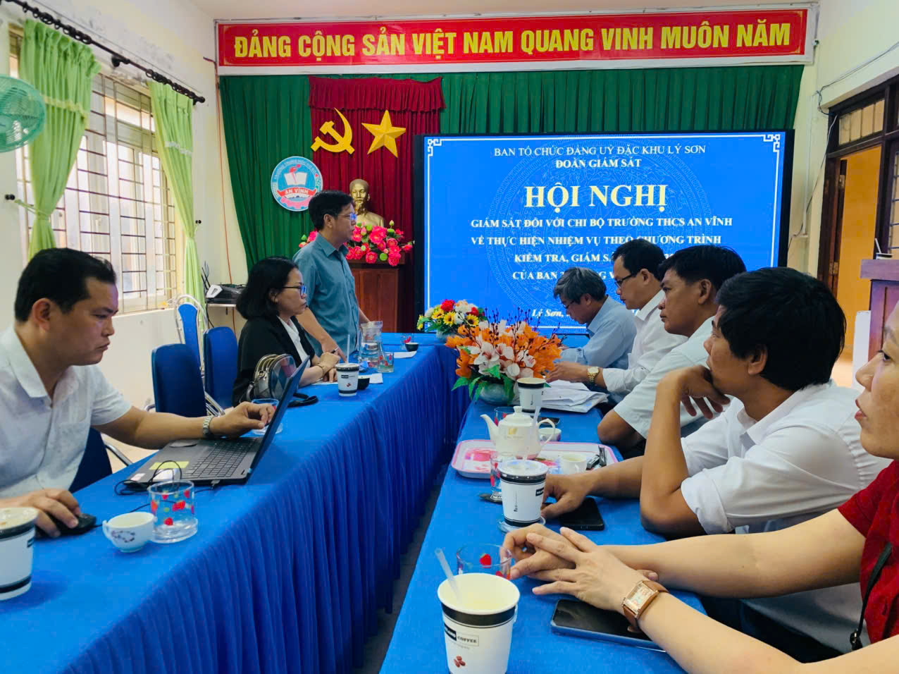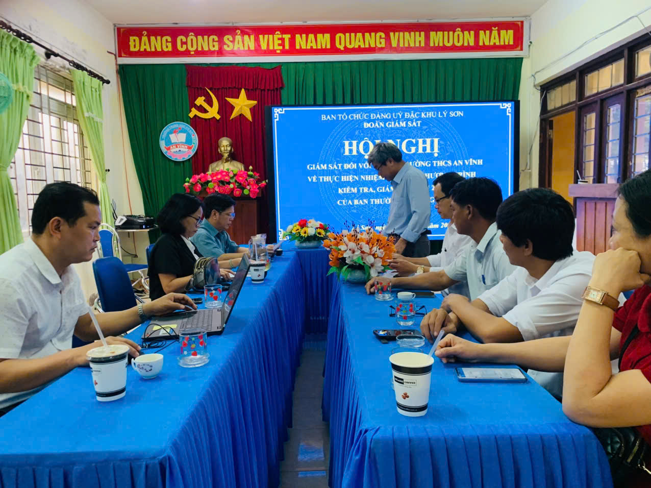ĐOÀN GIÁM SÁT BAN TỔ CHỨC ĐẢNG UỶ ĐẶC KHU LÝ SƠN LÀM VIỆC VỚI CHI BỘ TRƯỜNG THCS AN VĨNH