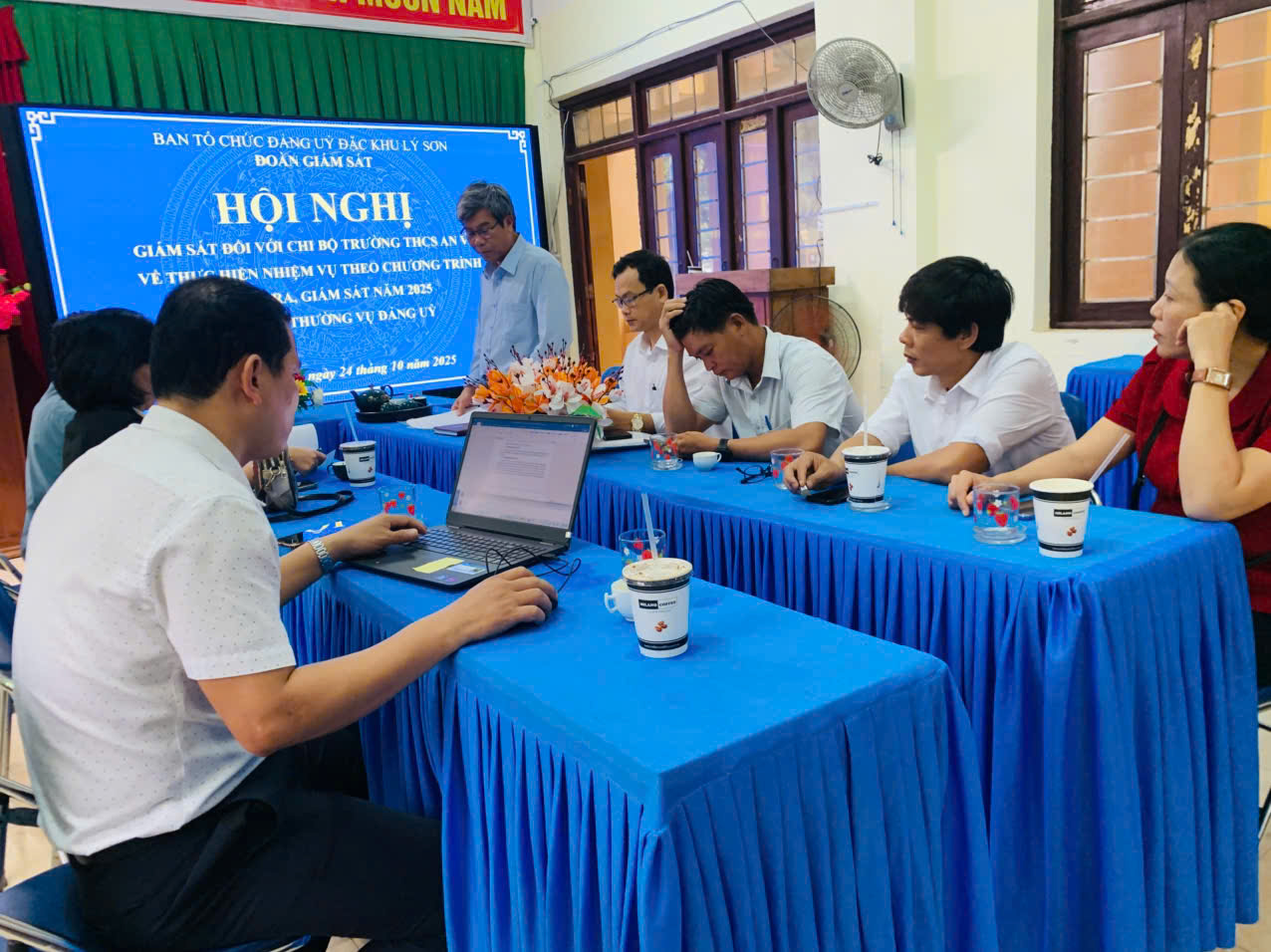 Thực hiện Chương trình giám sát của Ban Thường vụ Đảng uỷ Đặc khu năm 2025, sáng ngày 24/10/2025, Chi bộ Trường THCS An Vĩnh đã tiếp và làm việc với Đoàn giám sát của Ban Tổ chức Đảng uỷ Đặc khu Lý Sơn về thông qua dự thảo Kết luận công tác giám sát chi bộ theo kế hoạch.