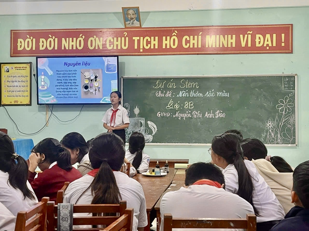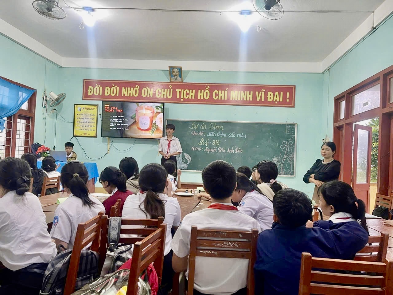Thực hiện kế hoạch đổi mới phương pháp dạy học theo định hướng phát triển năng lực học sinh, tổ Khoa học Tự nhiên trường THCS An Vĩnh, đã tổ chức một tiết học STEM dành cho học sinh khối 8, với chủ đề “Nến thơm sắc màu”, gắn liền với thực tiễn cuộc sống. Hoạt động nhằm giúp học sinh vận dụng kiến thức liên môn vào giải quyết vấn đề, tăng cường tính chủ động, sáng tạo và kỹ năng hợp tác.